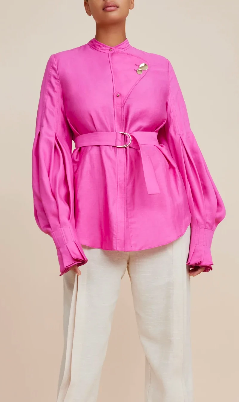 The Wheatland Shirt in Flamingo from Acler embraces understated elegance.