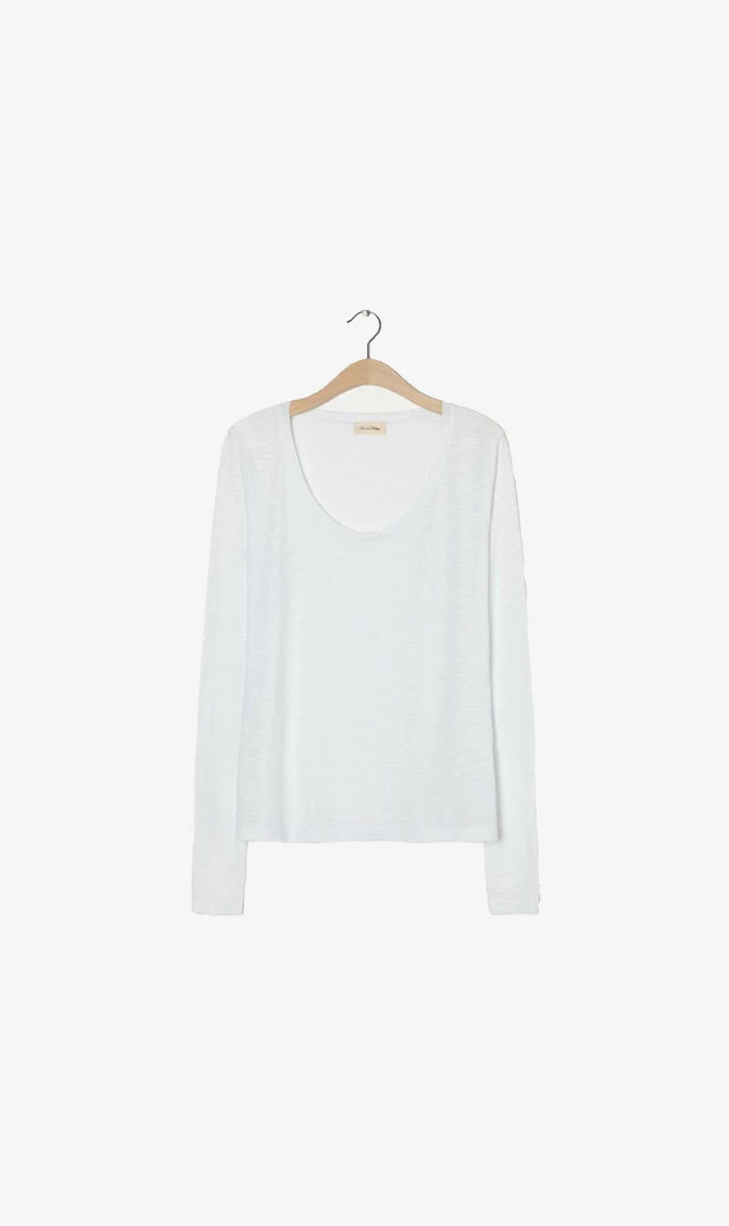 The American Vinatge Jacksonville Long Sleeve in White. A fine Long sleeve featuring a U neckline.