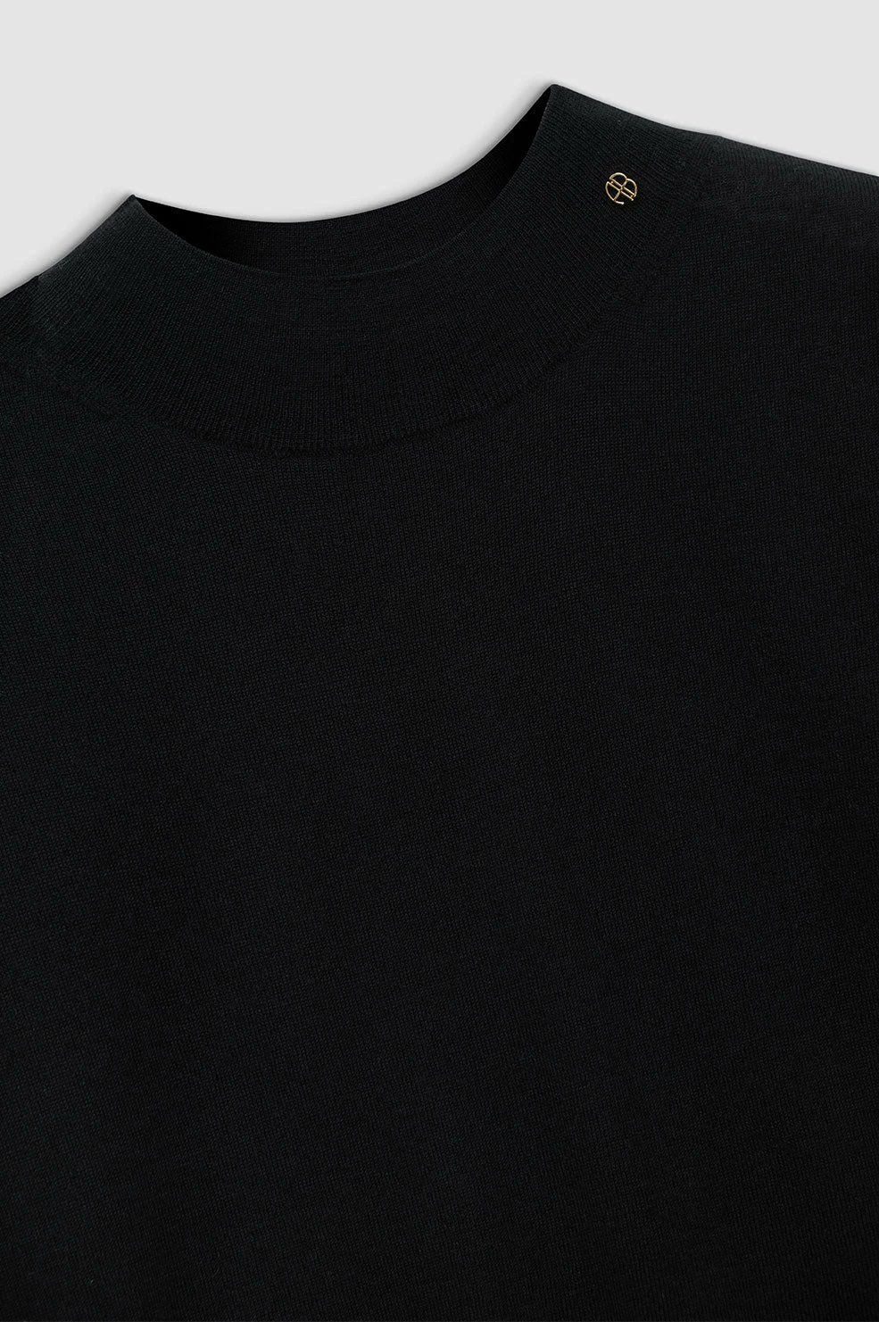 The Anine Bing Monique Sweater in Black instantly gives a polished look to your outfit. Crafted from a luxurious lightweight wool-cashmere blend, in an allover jersey stitch. Featuring short sleeves and a mock neckline with a small stitched Anine Bing monogram charm. Pair these with your tailored pants and boots for a professional look.Ā