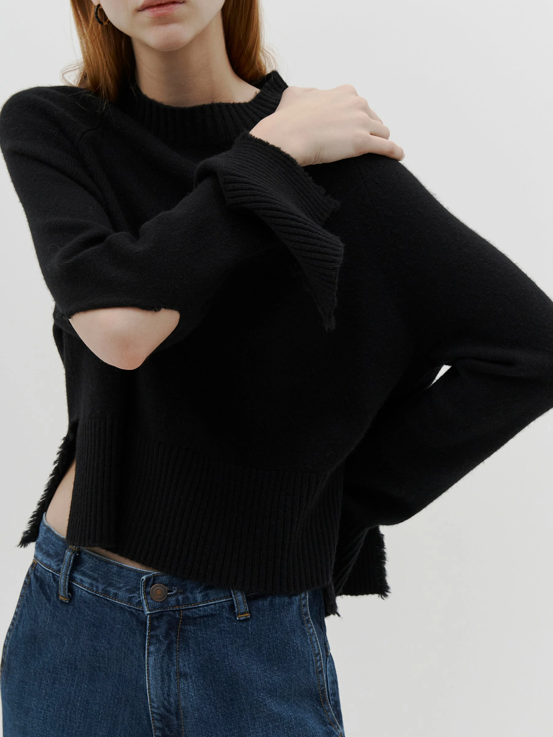 With intentional distressed detailing, the Bassike Deconstructed Knit is a relaxed take on the classic wool cashmere crew neck knit.