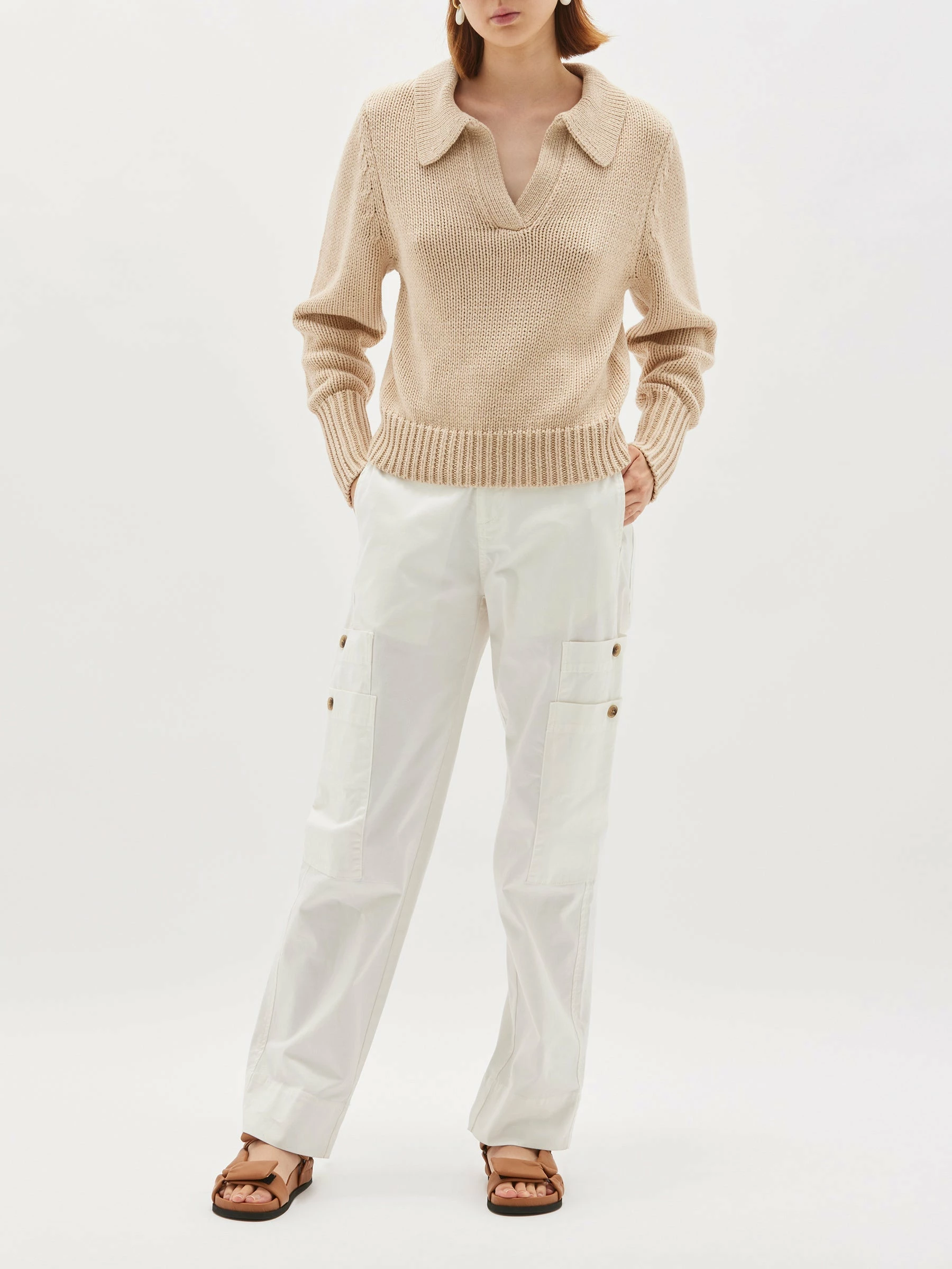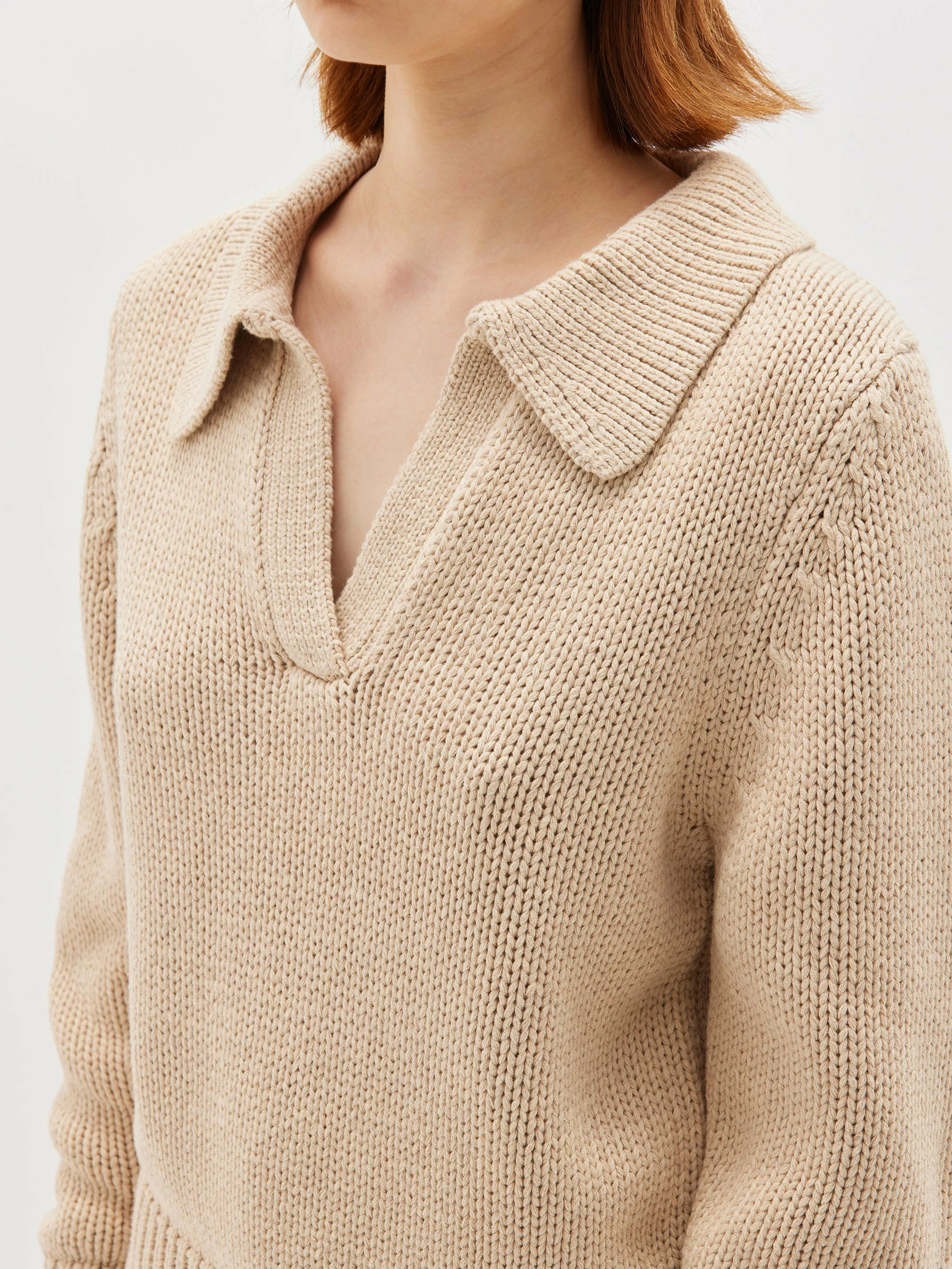 A relaxed fit chunky merino knit in cotton merino wool blend, with a polo neck by Bassike is a must have in your wardrobe.