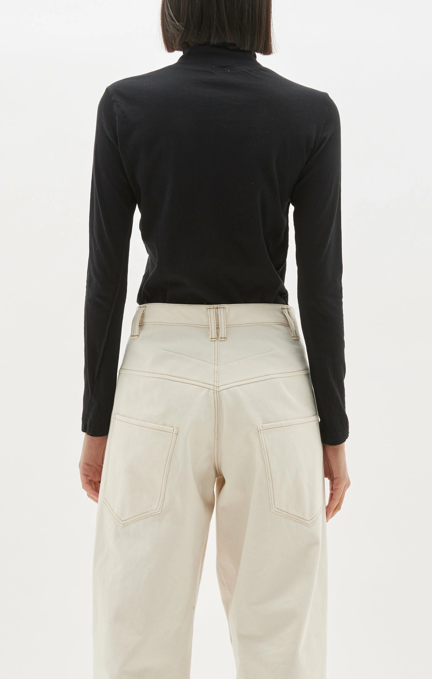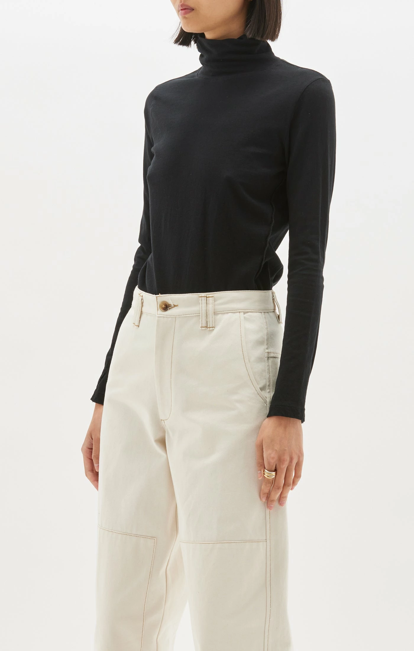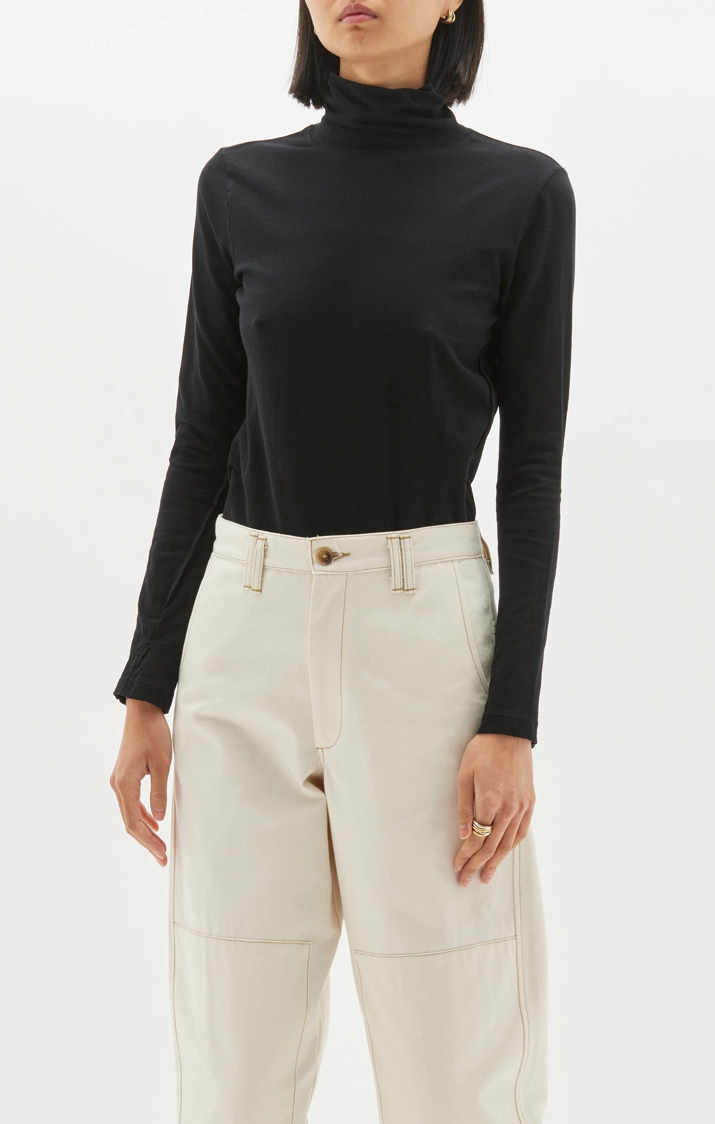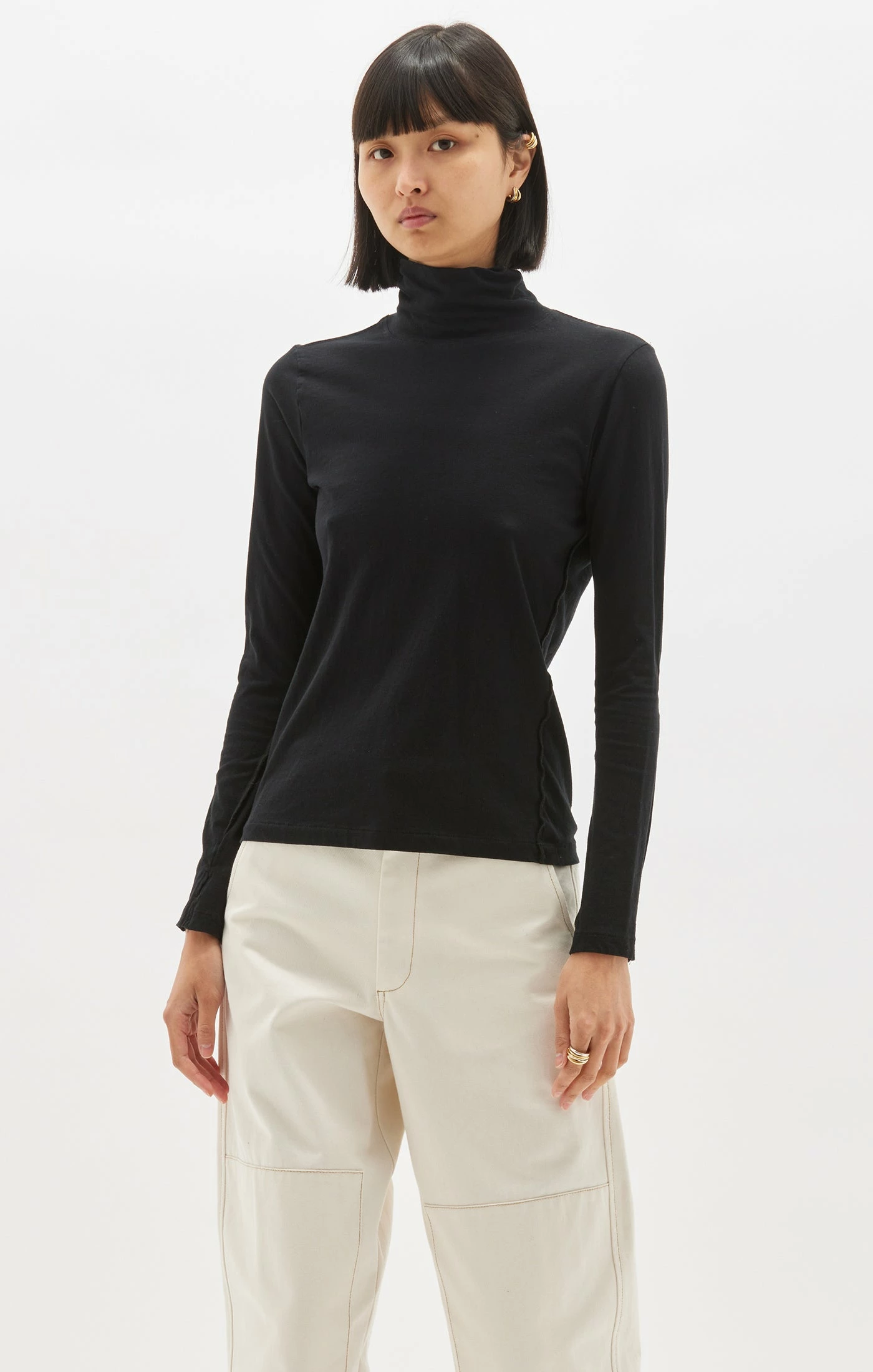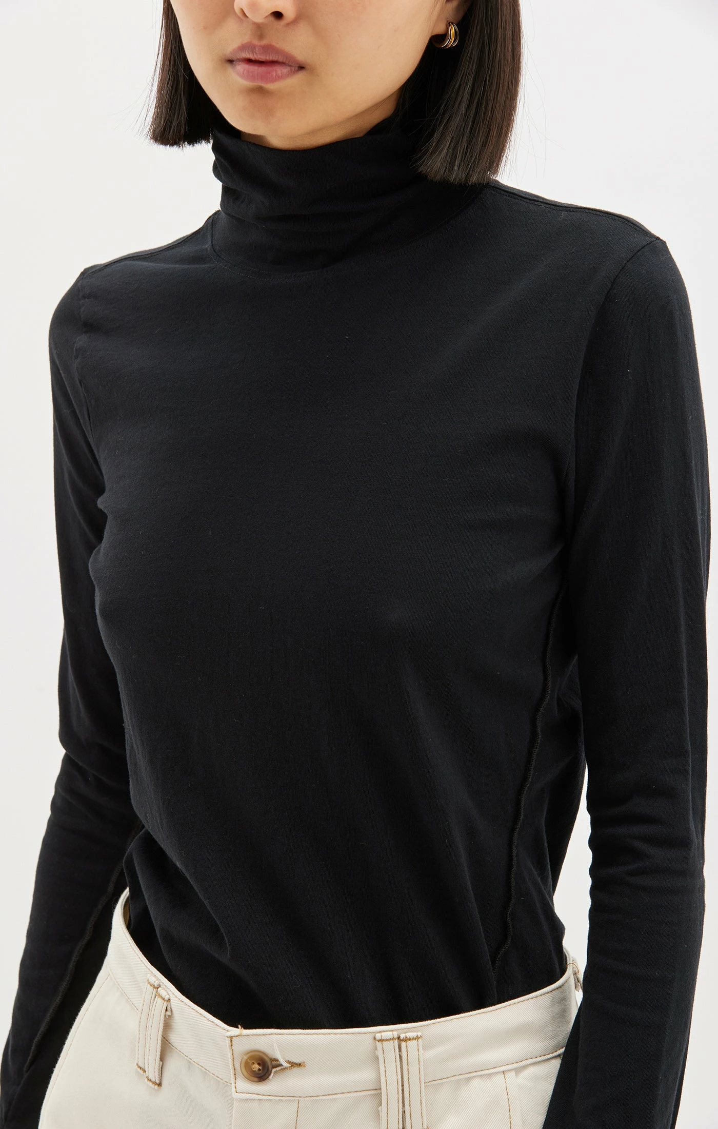 The Bassike Slim Fit Long Sleeve t.shirt with a roll neck, in organic cotton jersey is a go-to from the brand. Features include exposed side seams and a split back neck detail and timeless appeal.Â
