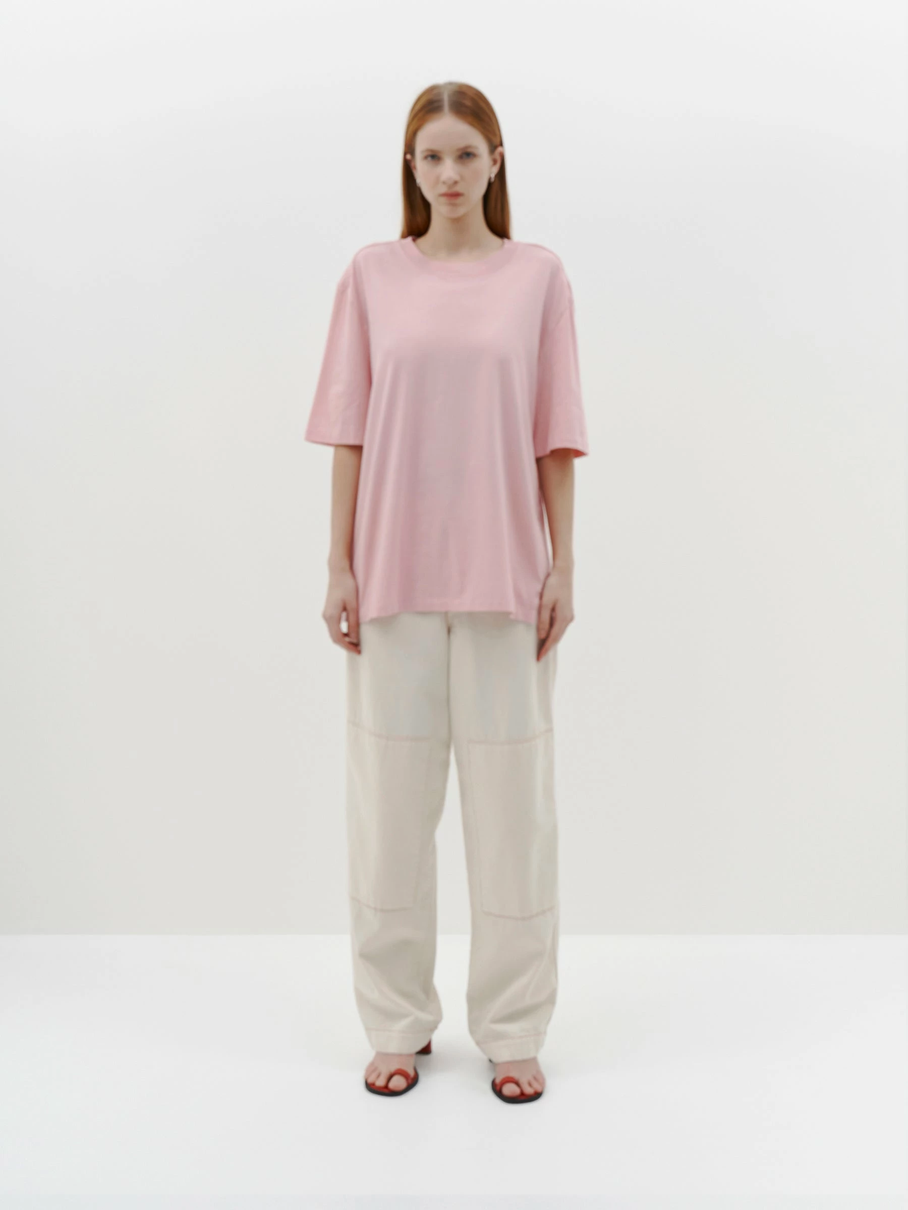 Ideal for long, hot summer days, the Slouch Boyfriend SS T-Shirt is an oversized boyfriend-style short sleeve in organic cotton jersey. Featuring a ribbed crew neck and contrast back neck chain stitch, pair with white denim for an easy summer style.