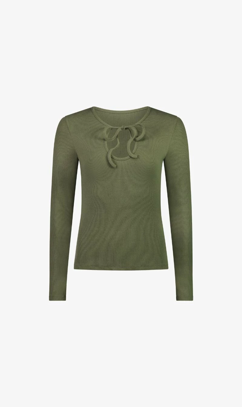 The Caitlin Crsip Scarlett Top in Khaki. The time warp’s younger sister is here. First on everybody’s wish list is the Scarlet Top. Wear it open, done up or tied around your neck for a bit of flare. We love to pair it under the Endearment Trench or with a pair of Fantasy Joggers for an effortlessly put-together look.