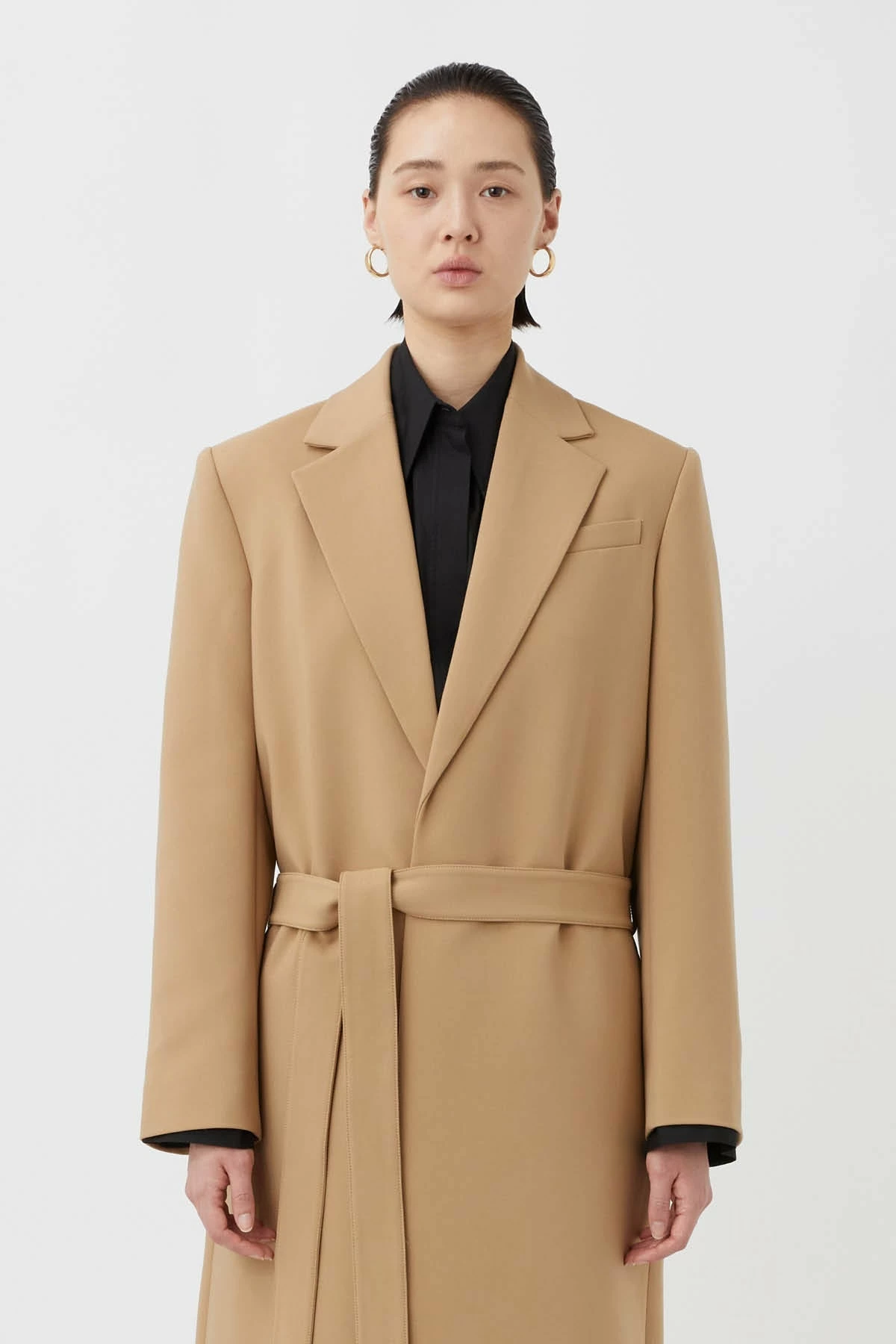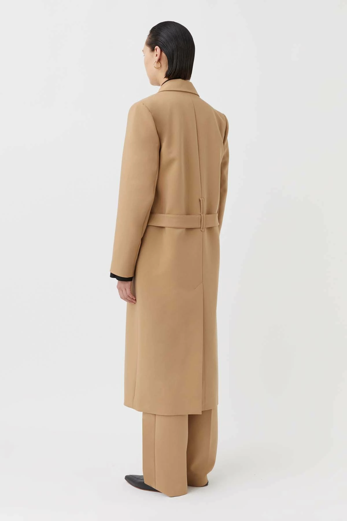 The Camilla and Marc Sterling Tailored Coat in Camel will be your go-to coat for all seasonal styling. It emulates a traditional longline man-style coat cut from a soft twill fabrication for its shape and structure. This versatile coat can be styled either using the lower belt loops to play into the dropped waist look or tied using the upper belt loops for a cinched waist effect.Â