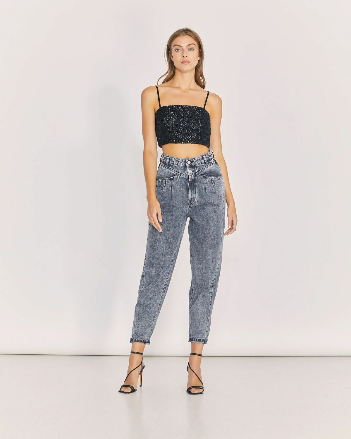 This fabulous IRO cami-style Lasting croptop features sequin embellishment and spaghetti straps. Offset this delicate piece with highwaisted trousers on your next girls night out.