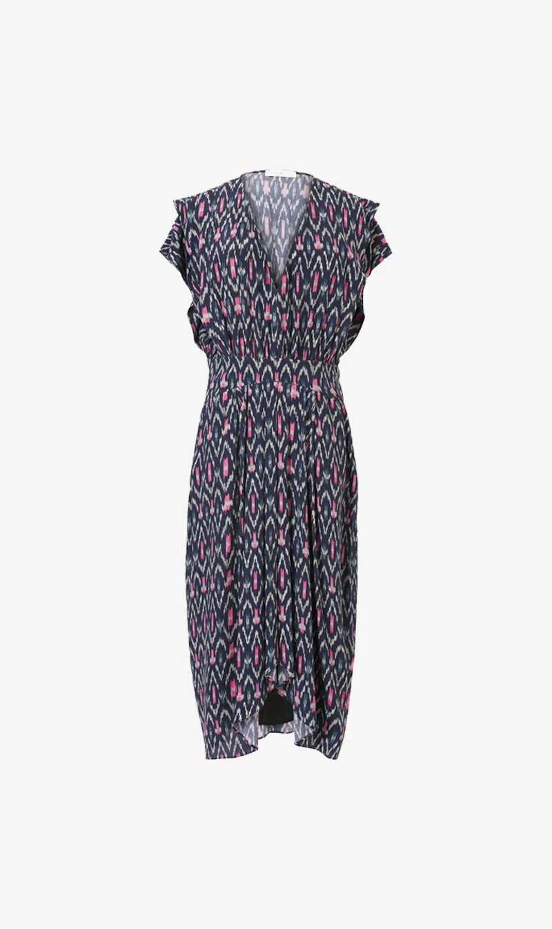 The Isabel Marant Almeya Dress in Faded Night. A Long viscose dress with short sleeves featuring a V neck and Zip fastening.