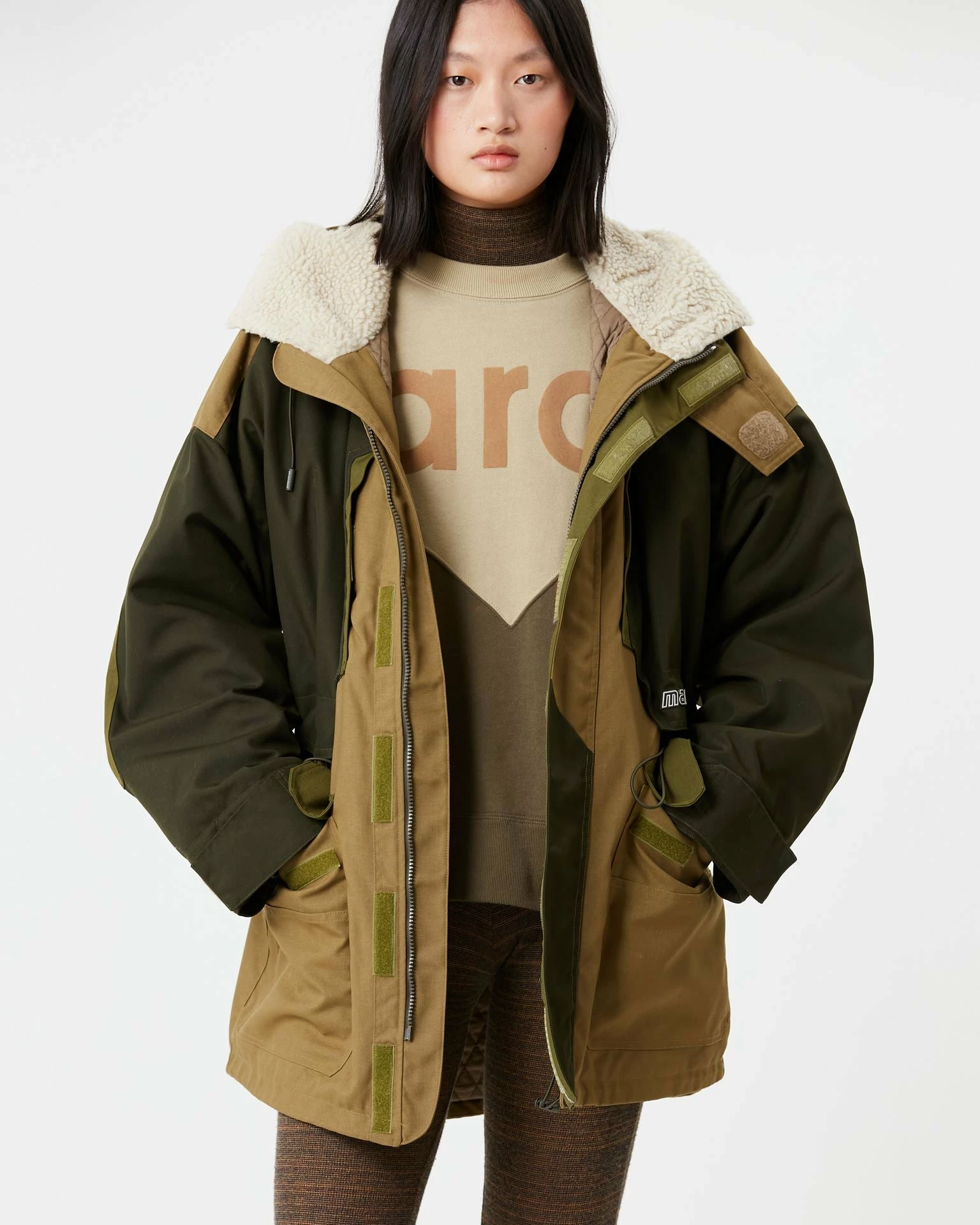 The Isabel Marant take on the classic parka, the Gane features colour blocked body, a shearling hood inner and a futuristic Marant logo. Oversized in fit, this investment piece will see you through the seasons for years to come.Â
