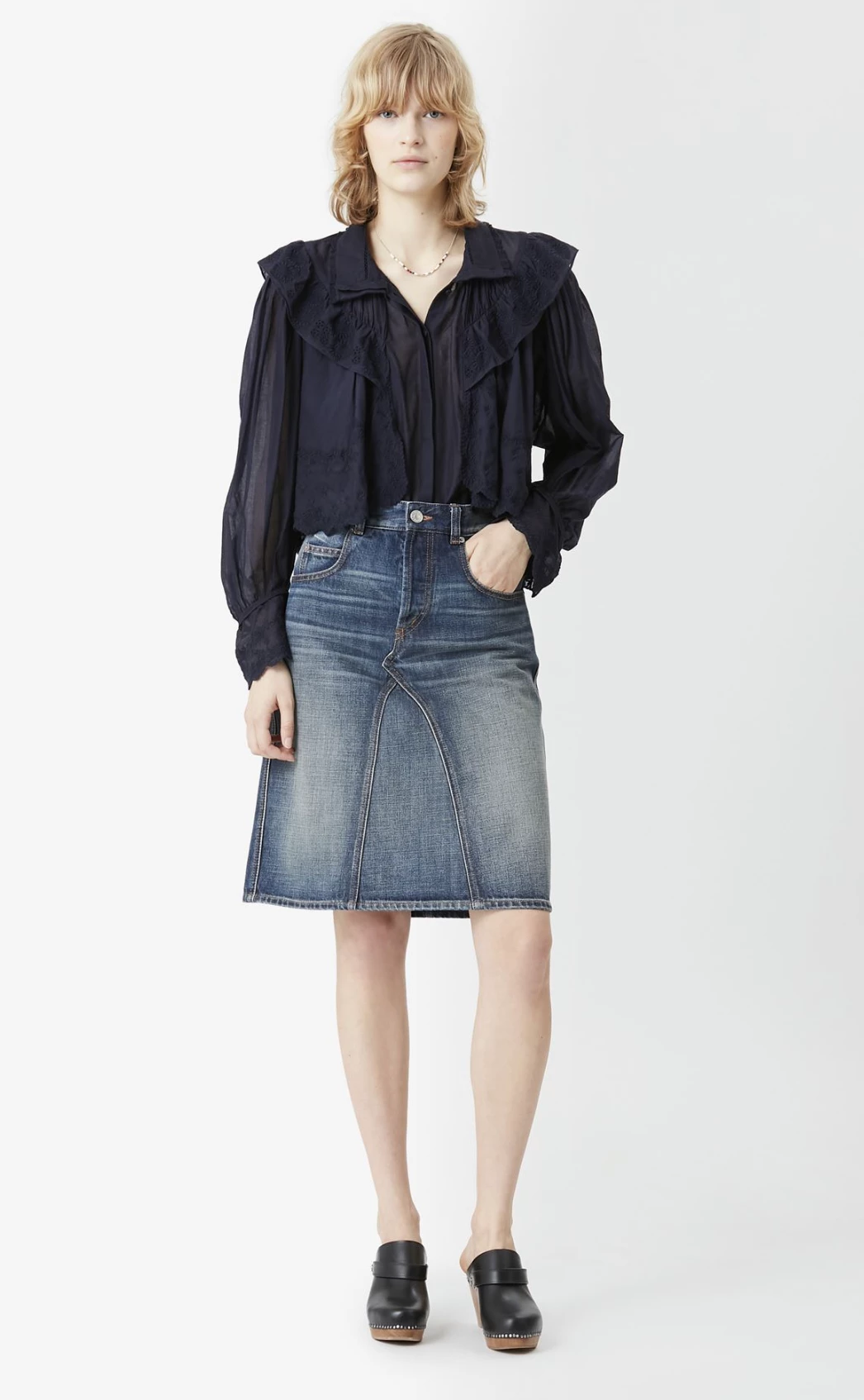 The Isabel Marant Lelmon Blouse in cotton and lace with short sleeves
