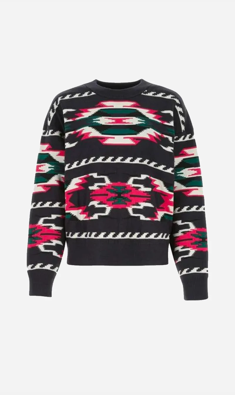 Classic Isabel Marant, the Milton Pullover features graphic jacquard print on a traditional crew neck style pullover. Crafted from wool mix, this jumper is ideal to pair with denim shorts or dress down a midi-length silk skirt.Â