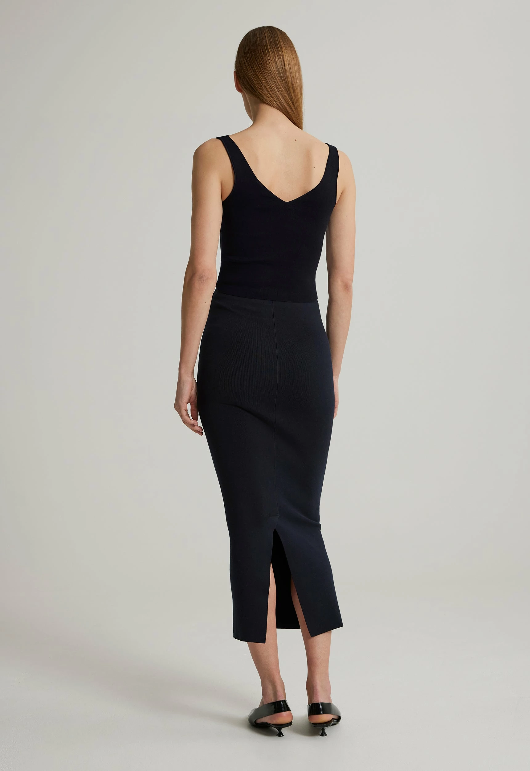 The beautifully cut Jac+Jack Scope Top is crafted from soft super pima cotton. An elevated piece, this sculpted rib tank effortlessly skims and accentuates the silhouette. With a plunging neckline and waisted hem length, this piece not only layers beautifully but is a true stand-out piece on its own. Pair with the matching Pace skirt or elevate your favourite pair of jeans.