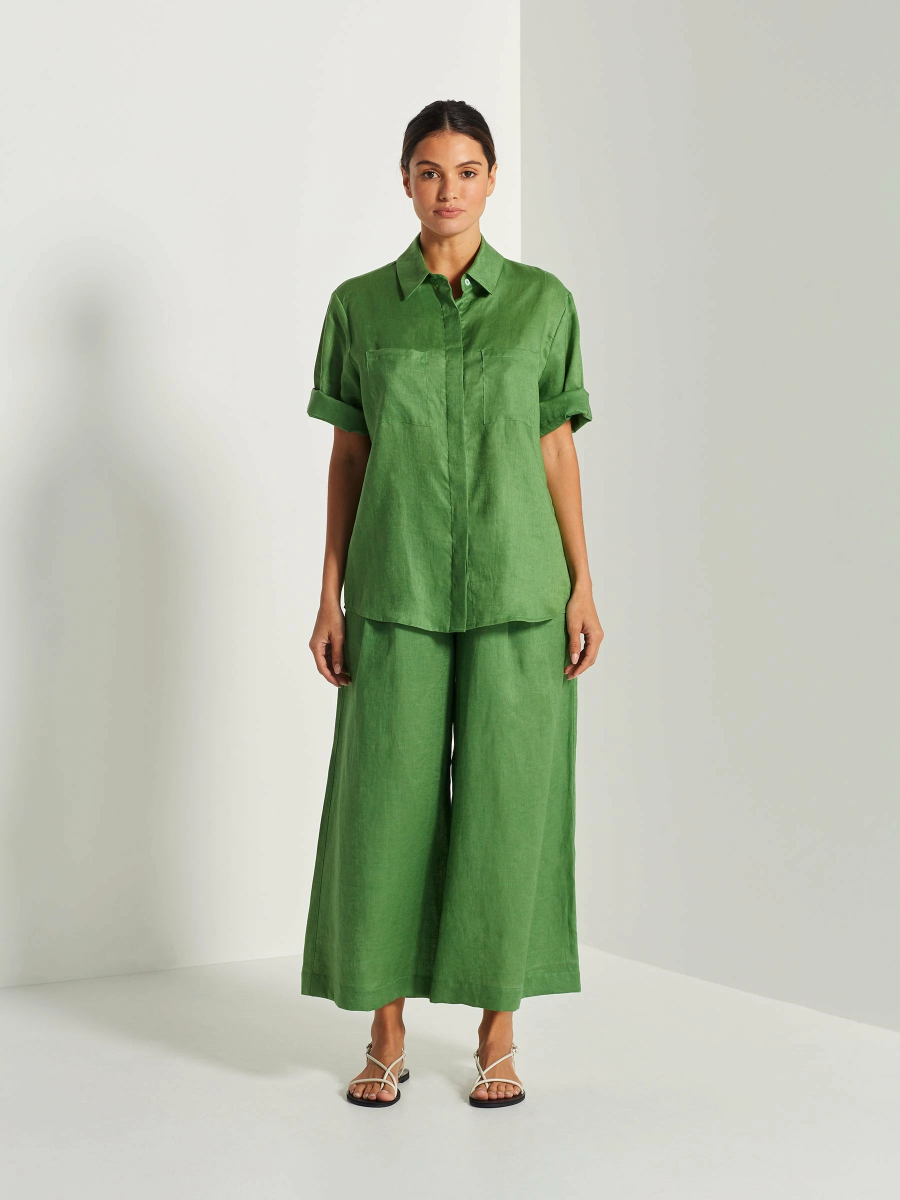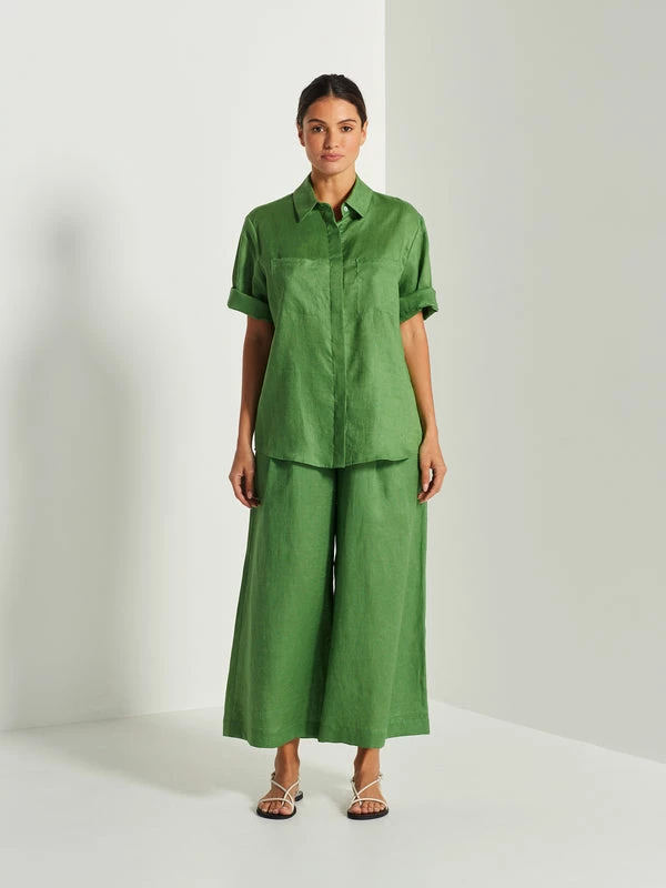 With true everyday elegance, the light weight linen Alisa Shirt by Juliette Hogan is the perfect addition to any summer wardrobe. Featuring a slightly longer sleeve that can be cuffed or left for length, this wardrobe stable can be worn day or night. Pair with soft blue denim, open over a white tank.