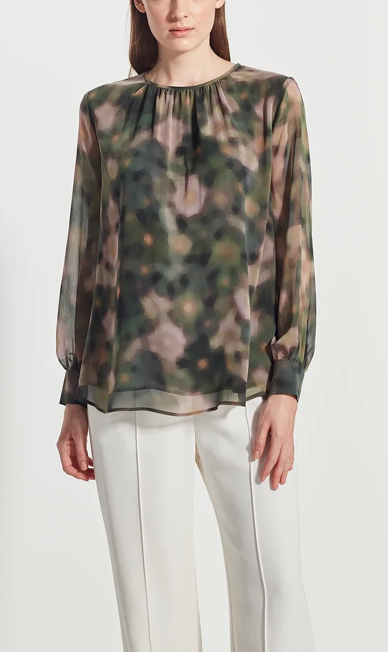 The Juliette Hogan Ara Blouse in Windflower is a fun pattern inspired by abstract watercoloured florals. Designed as a long sleeve top with a modest crew neckline, it softly gathers and falls relaxed on the body.Â