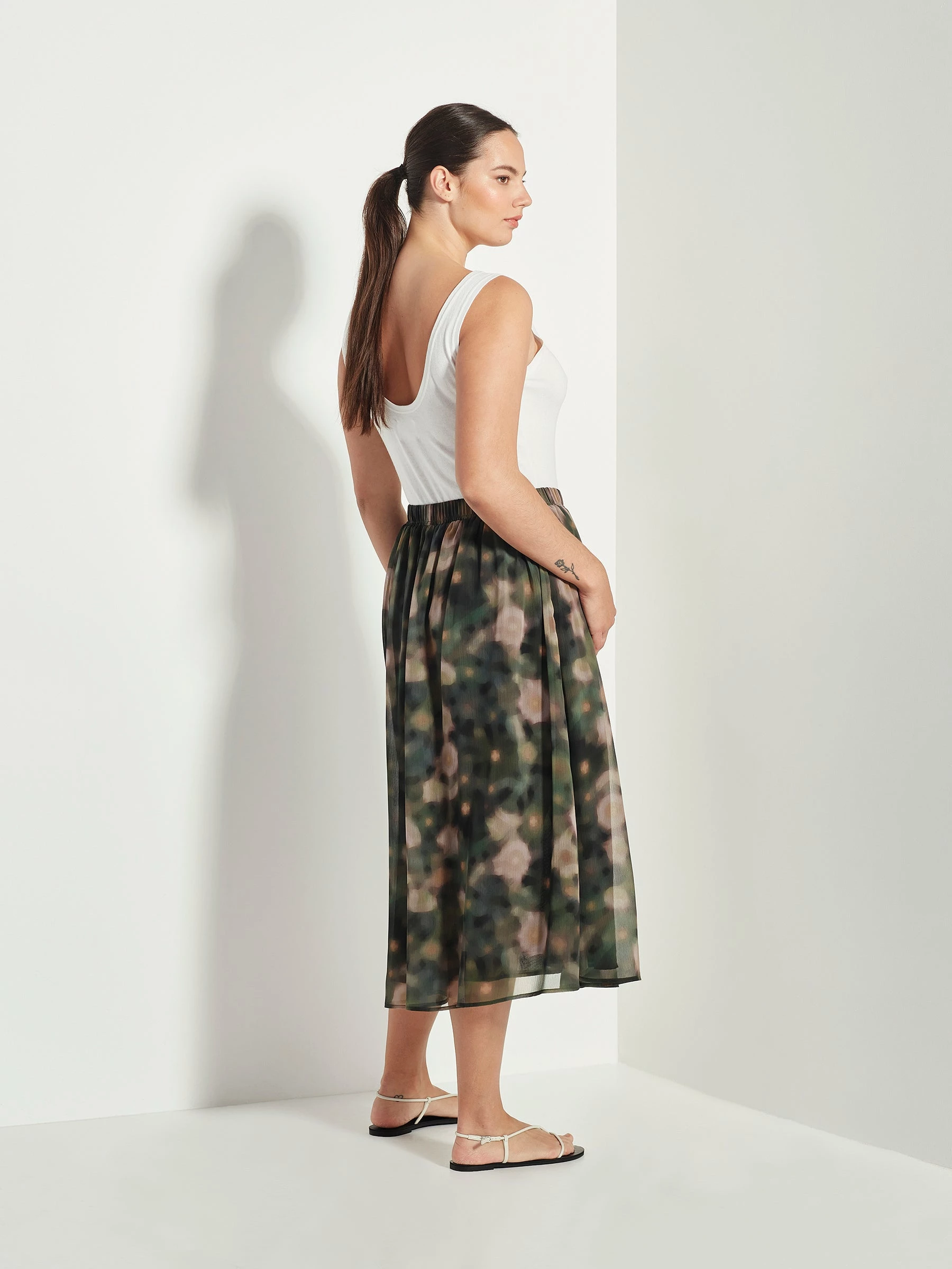 The Juliette Hogan Arcade Skirt Windflower is a fun pattern inspired by abstract watercoloured florals. Designed as a midi-skirt with an elasticated waistband, side pockets, and a mid-calf finish. Pair yours with a white blouse and sandals for an elevated summer look.
