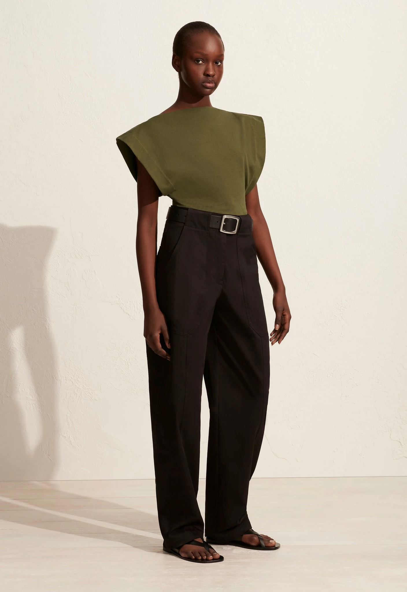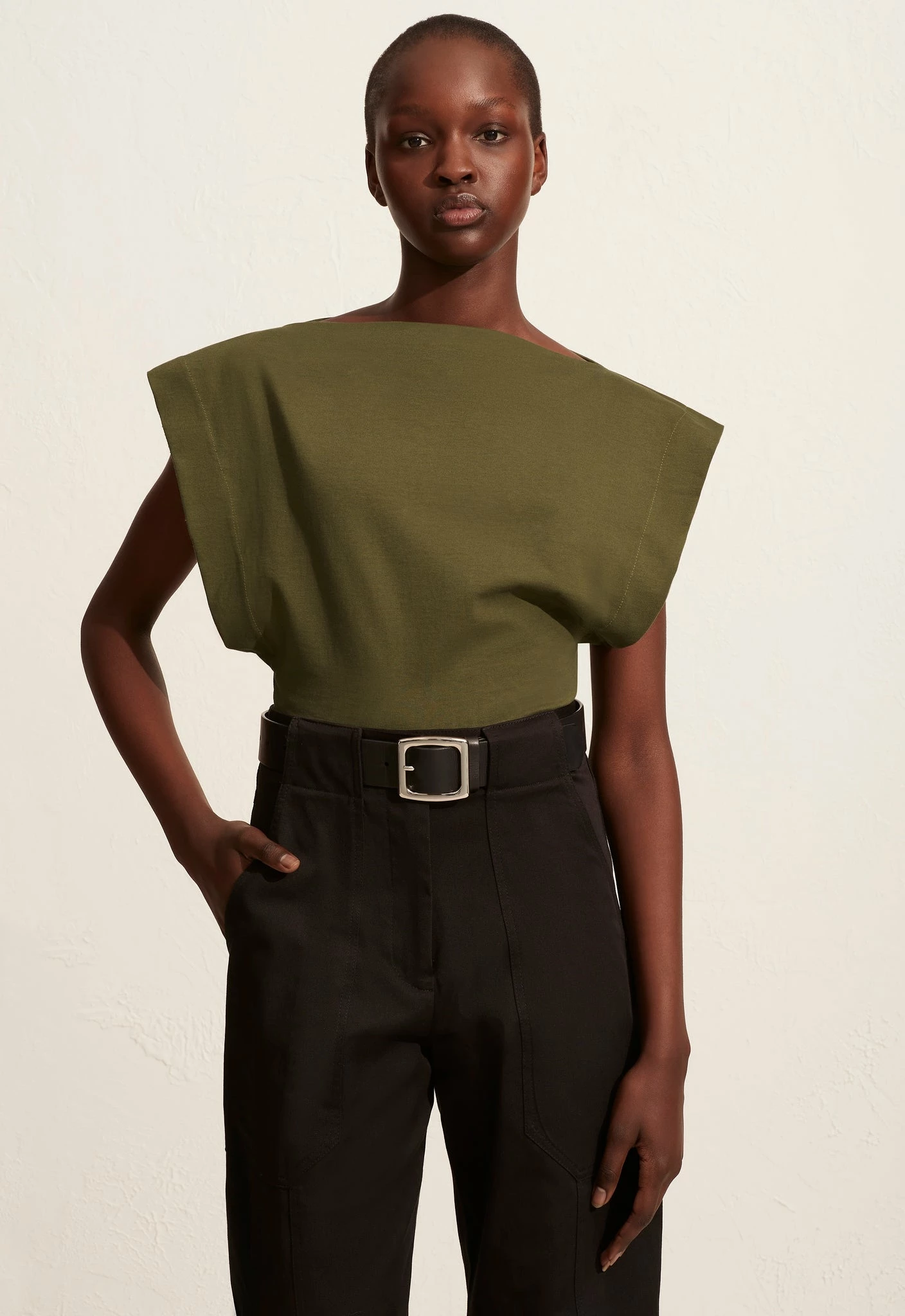 Perfect for pairing with loose summer shorts, the Boat Neck Tee by Matteau is an essential boat neck style top crafted in heavy-weight jersey. A wide sleeve opening gives this tee a dramatic silhouette, with turned hem and fitted waist. Â