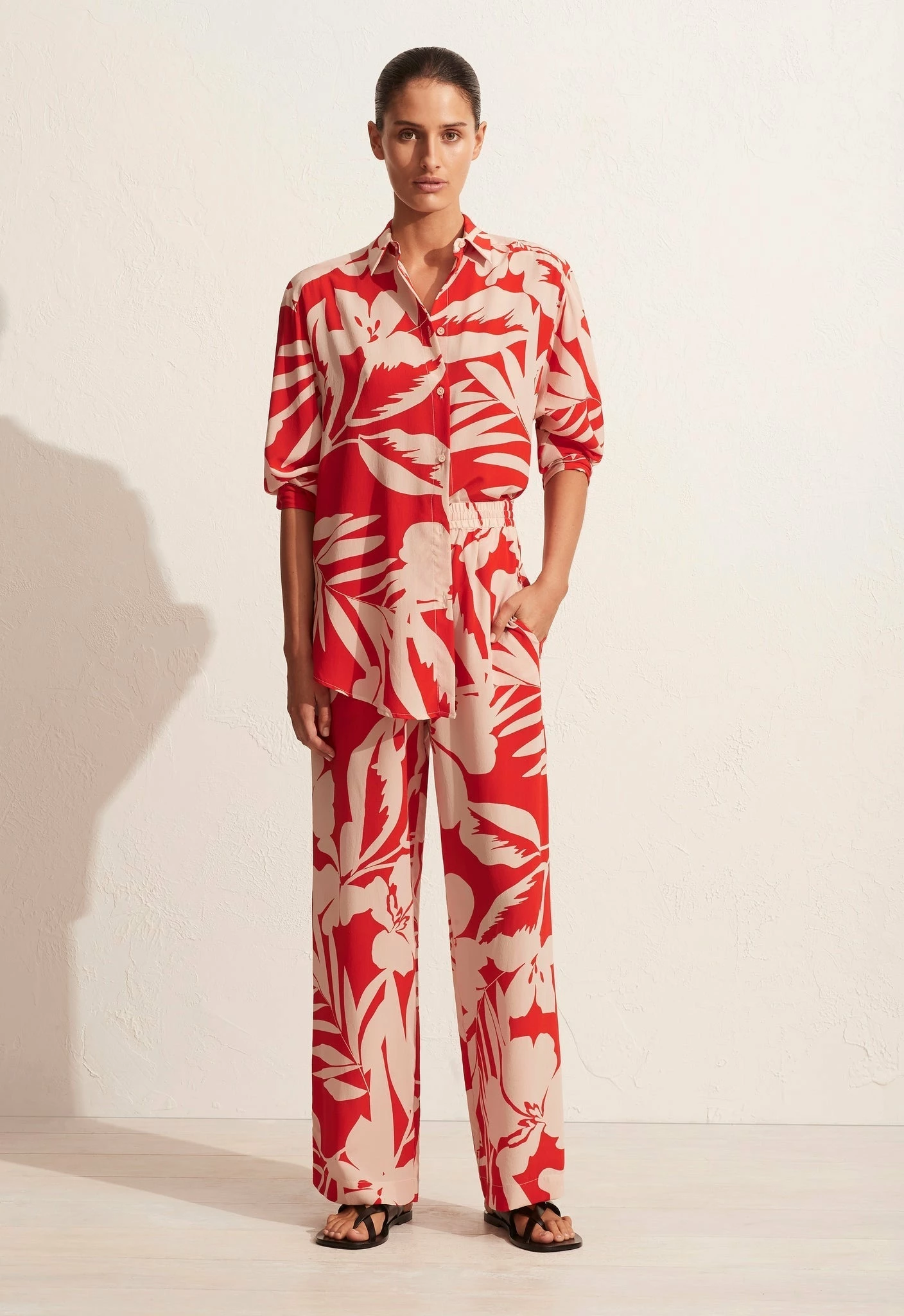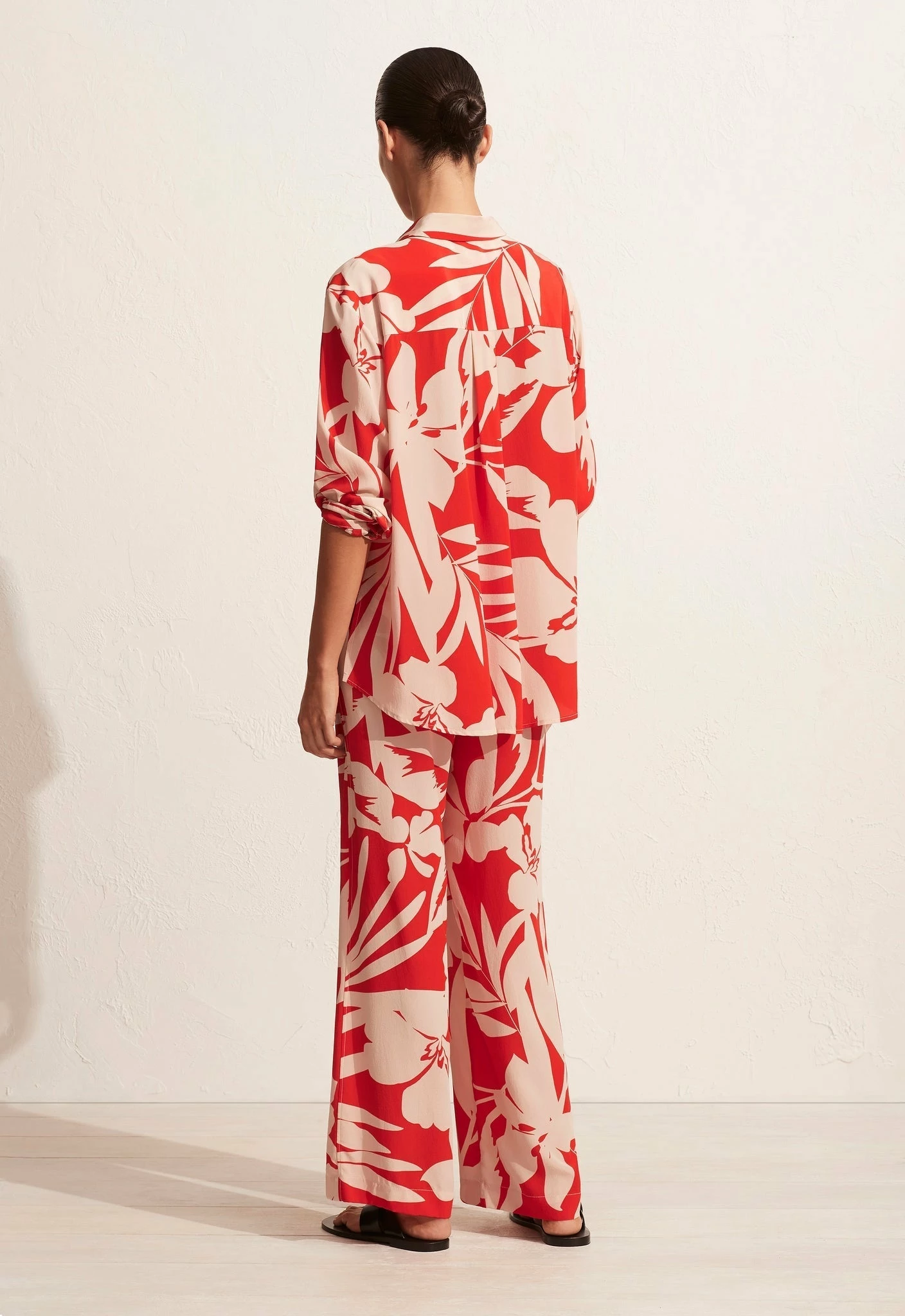 - Model is 178cm and wears the Long Sleeve Silk Shirt in Ginger Palm in a size 2.