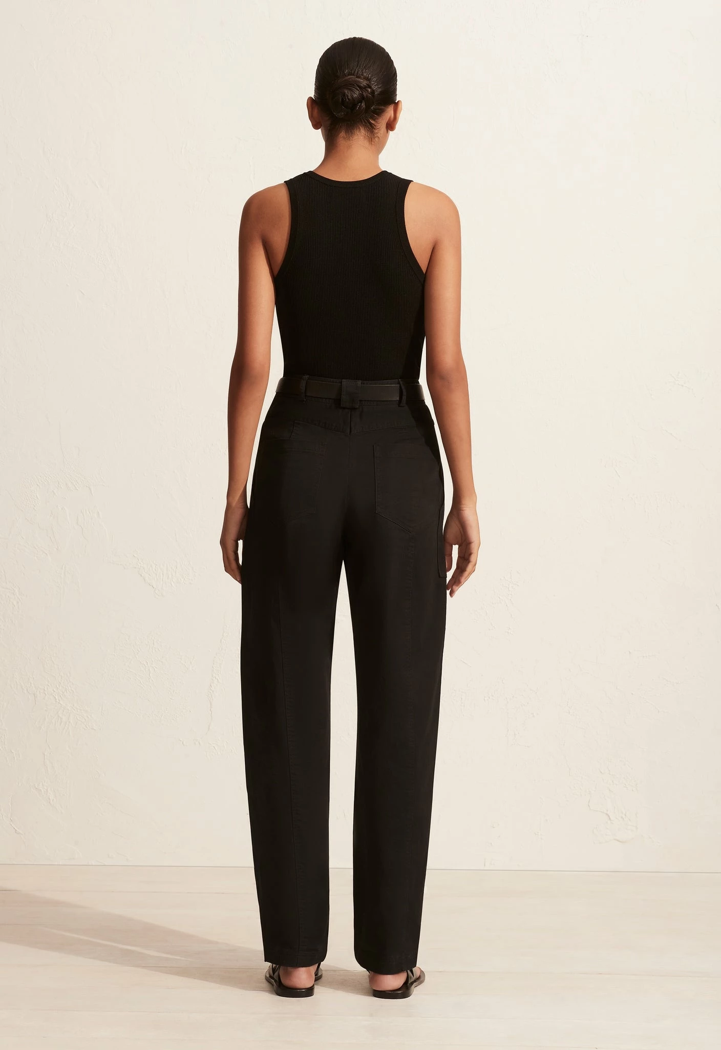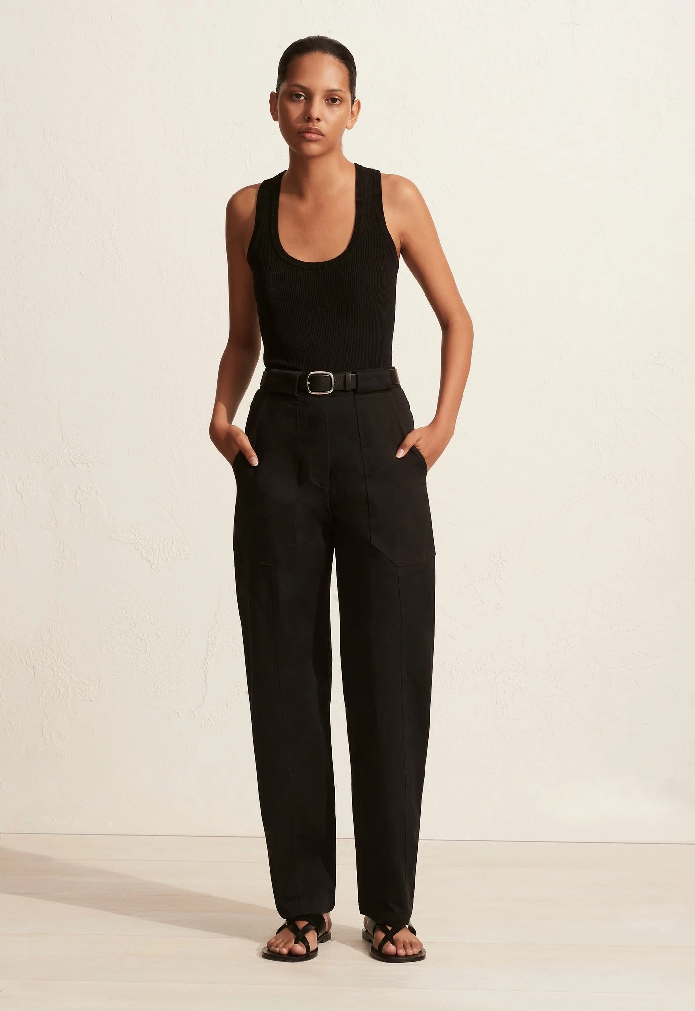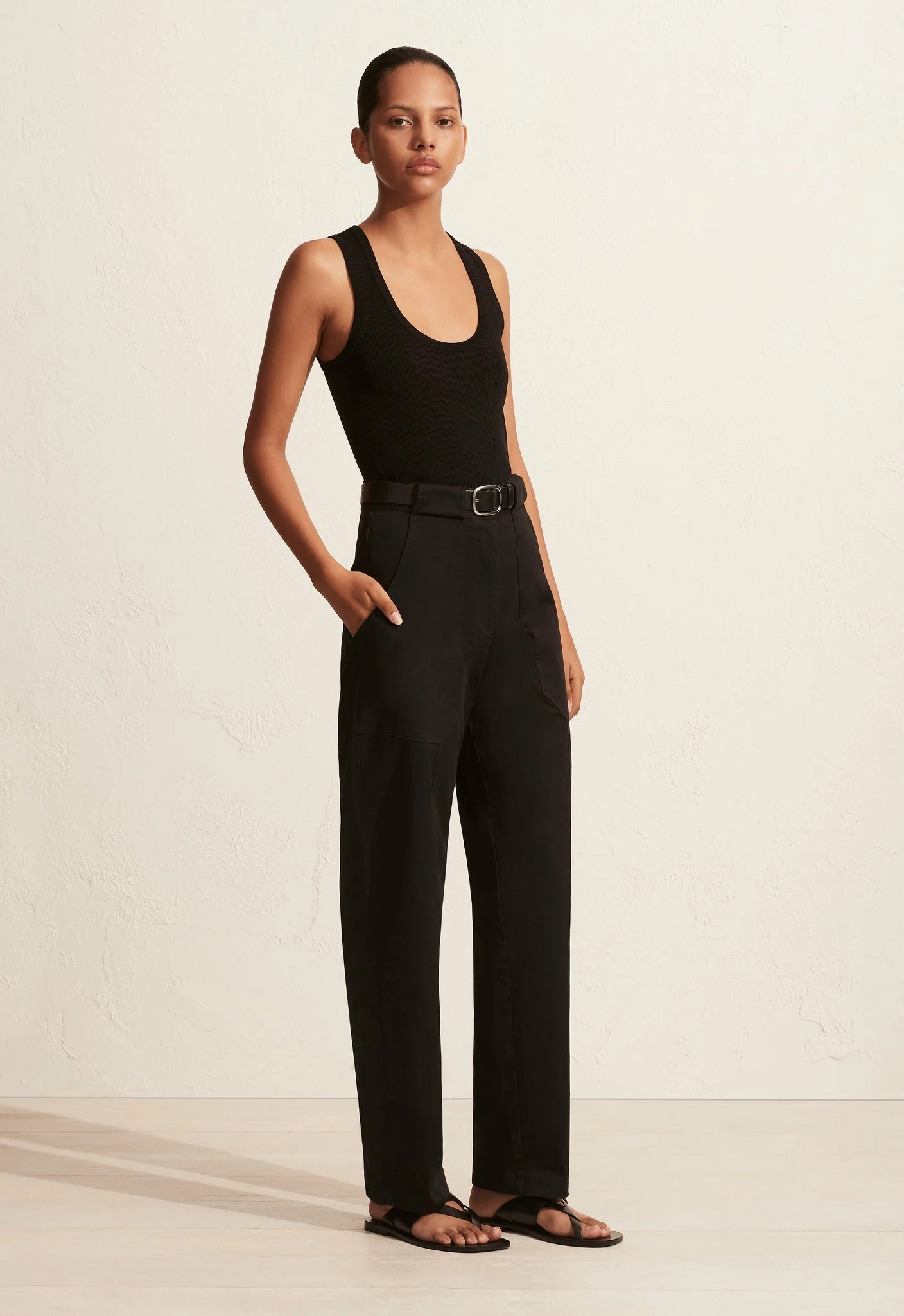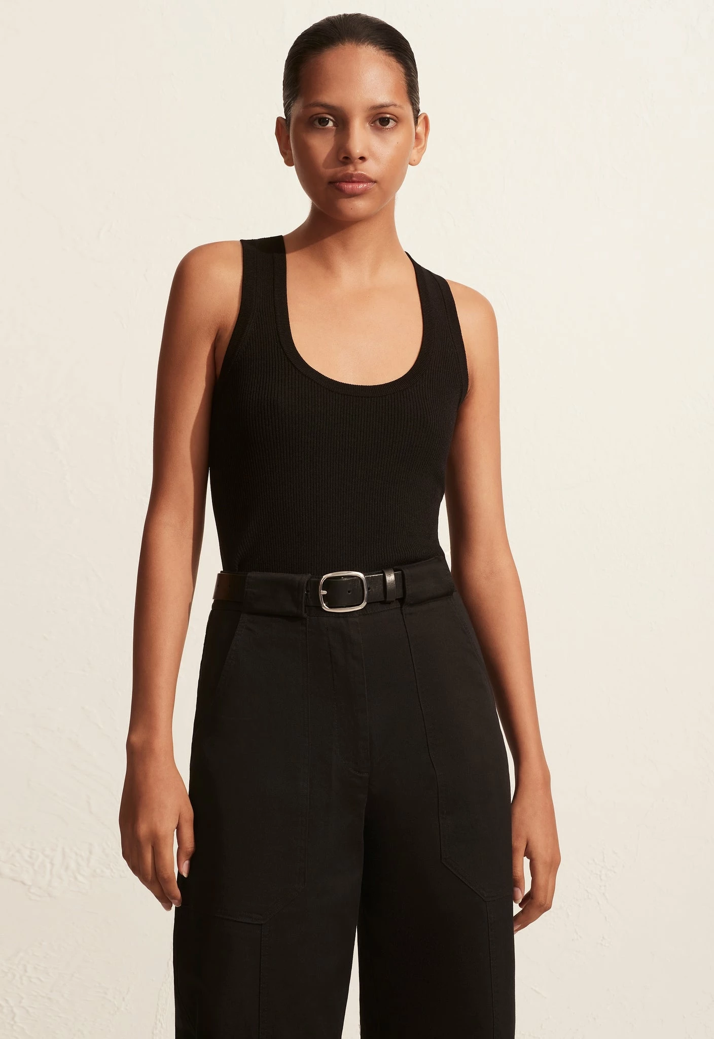 The perfect ribbed tank with a deep scooped, elegant neckline. Made from dry handle viscose blend the Ribbed Tank by Matteau has a snug fit. Wear it with nearly everything, including a slouchy pant or summer skirt.Â