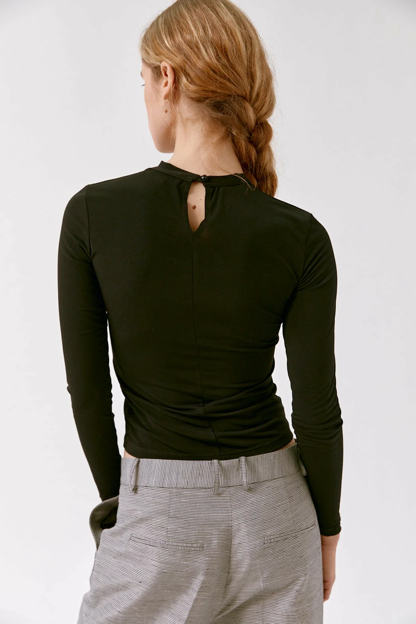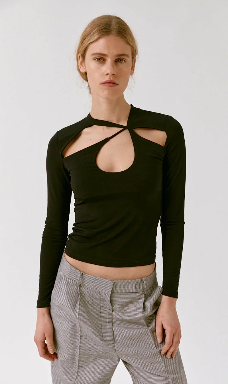 The Musier Paris Eleonore Top in Black. A long sleeves top with asymmetrical neckline cut.