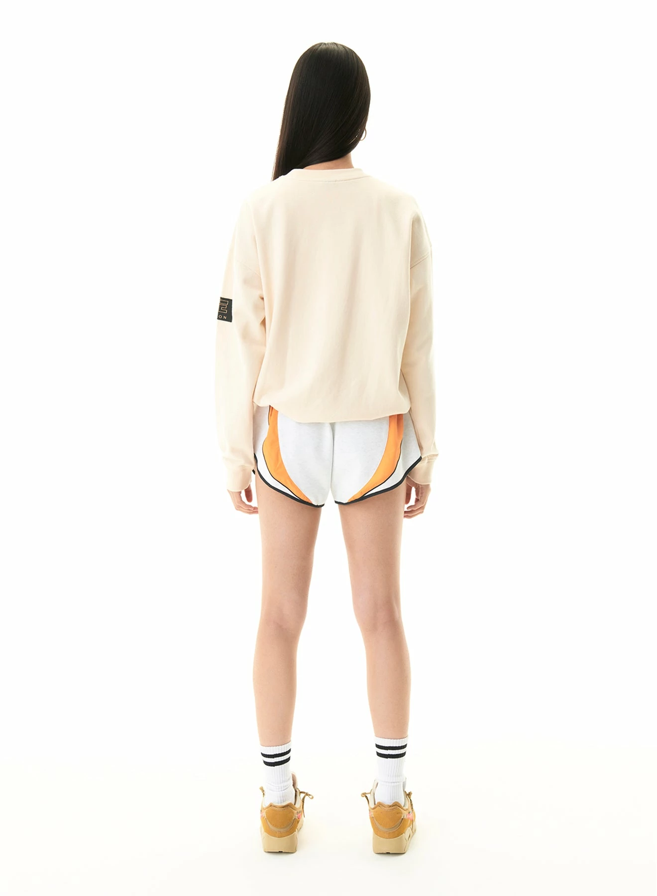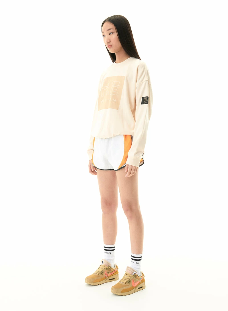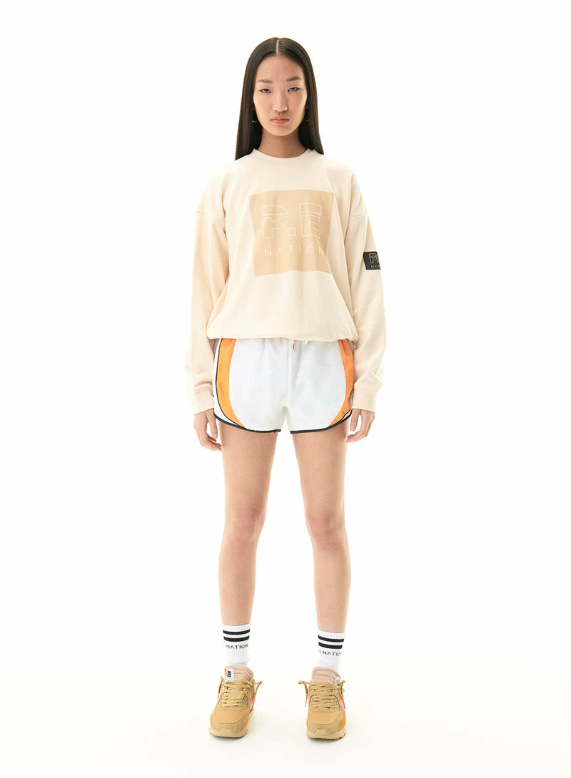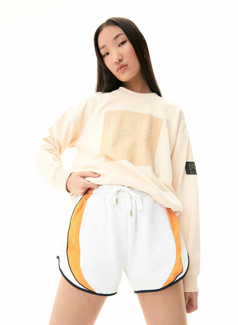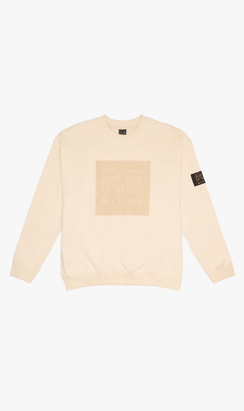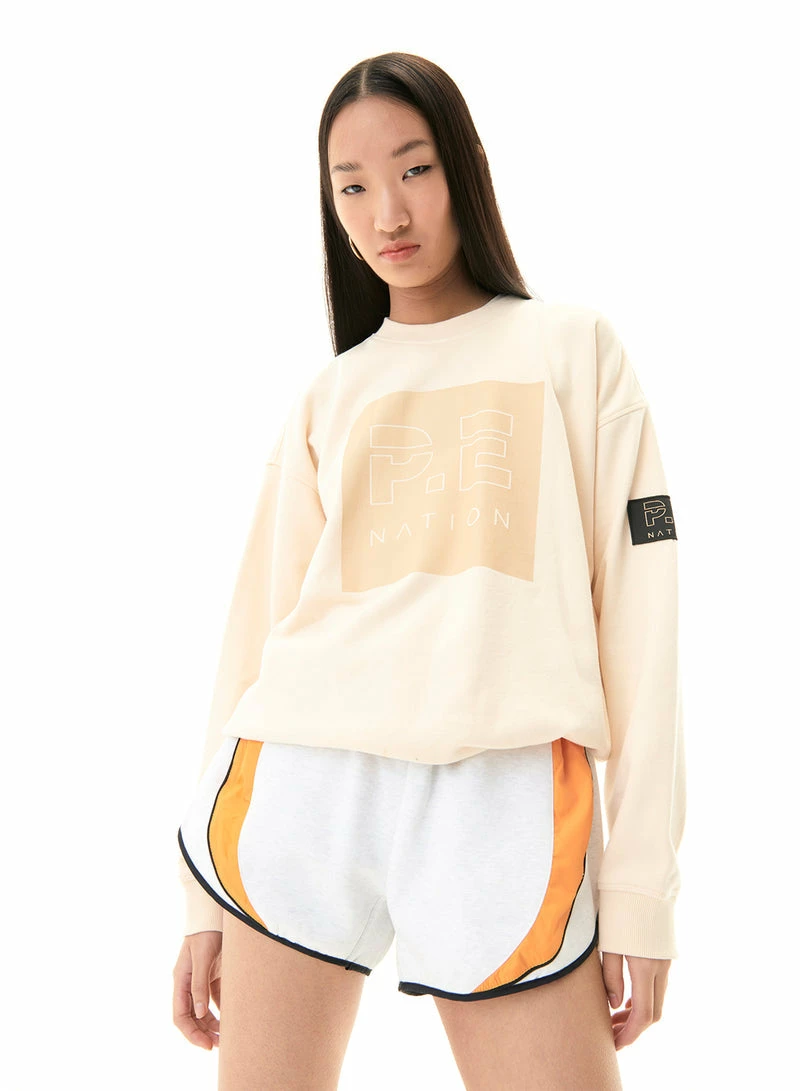 The P.E NATION Arcade Sweat in Pearled Ivory will be your new go-to athleisure sweat. Designed to be an interchangeable piece that fits perfectly in between sport, recreation, and street. Crafted mindfully from 100% organic cotton, the Arcade Sweat is better for the people and the planet. With a relaxed fit and classic crew neck silhouette, matched with a tonal P.E Nation flat rubber print feature at the front.Â