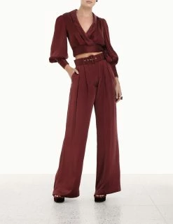 Zimmermann | Silk Wrap Blouse – Burgundy