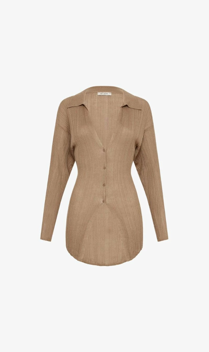 Relaxed and unassuming, the Pleat Knit Shirt by St. Agni is centred on the sensuality of the pleat. Boasting a 100% TENCEL™ yarn, the Pleat Knit Shirt features a V-neck, button down front, classic collar and long-sleeve design. Unafraid to bare the décolletage, the Pleat Knit Shirt can be worn particularly unbuttoned, layered or worn alone with our tailored wool trousers for a classic, everyday ensemble.