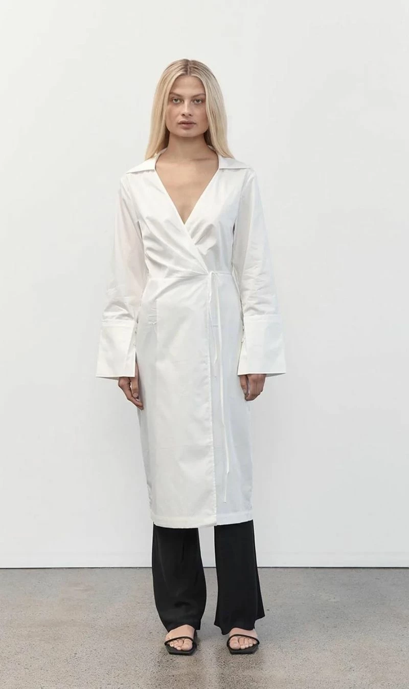 Designed around the elegance of wrap detailing, the St. Agni Wrap Dress combines the sophistication of vintage corporate styling with the ingenuity of a modern approach. Boasting a v-neckline, wide, split-cuff detail and midi hem, the Wrap Dress is a demure option for both everyday and occasional dressing. The Wrap Dress� tie-up waist, cinches the figure for a universally flattering fit.�