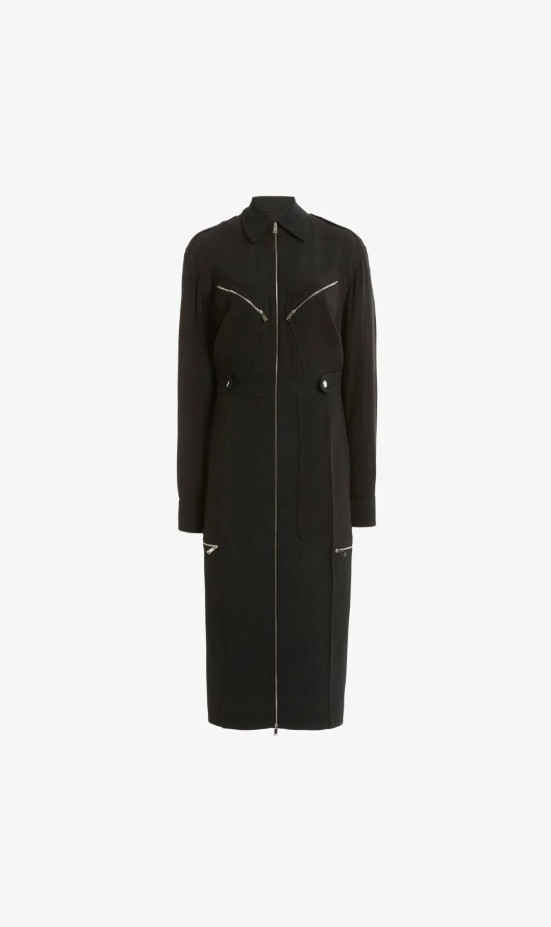 The Victoria Beckham Zip Detail Utility Dress in black is a show stopper, dress it up or dress it down.